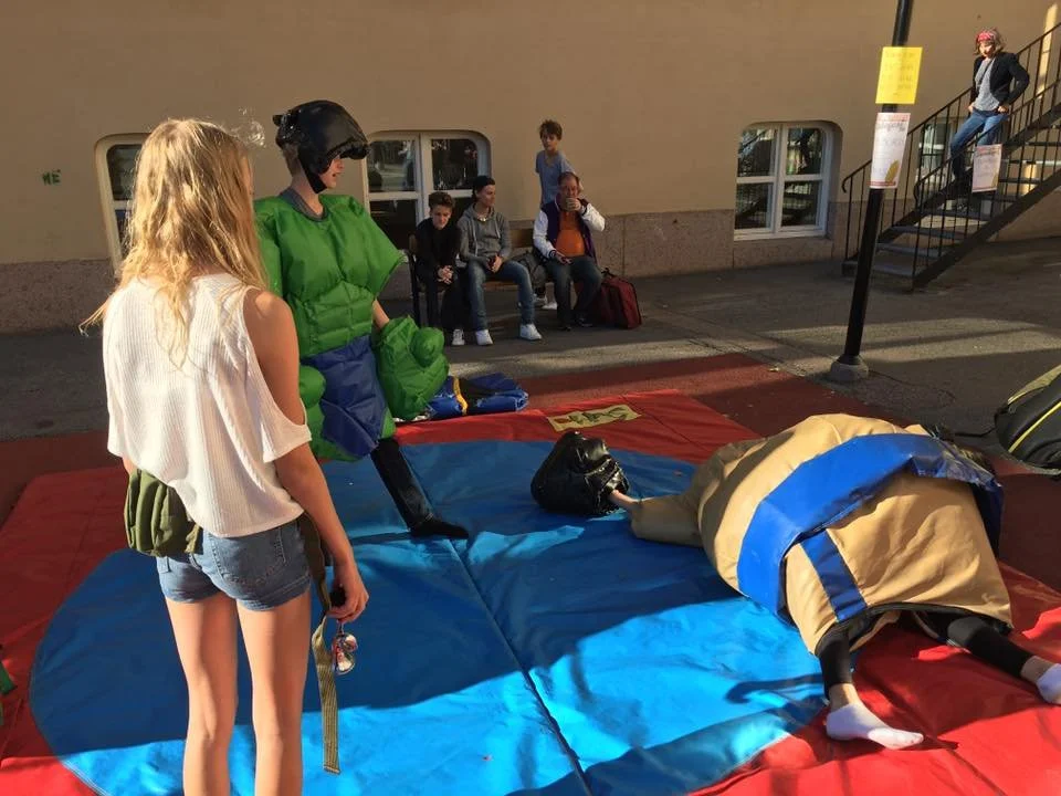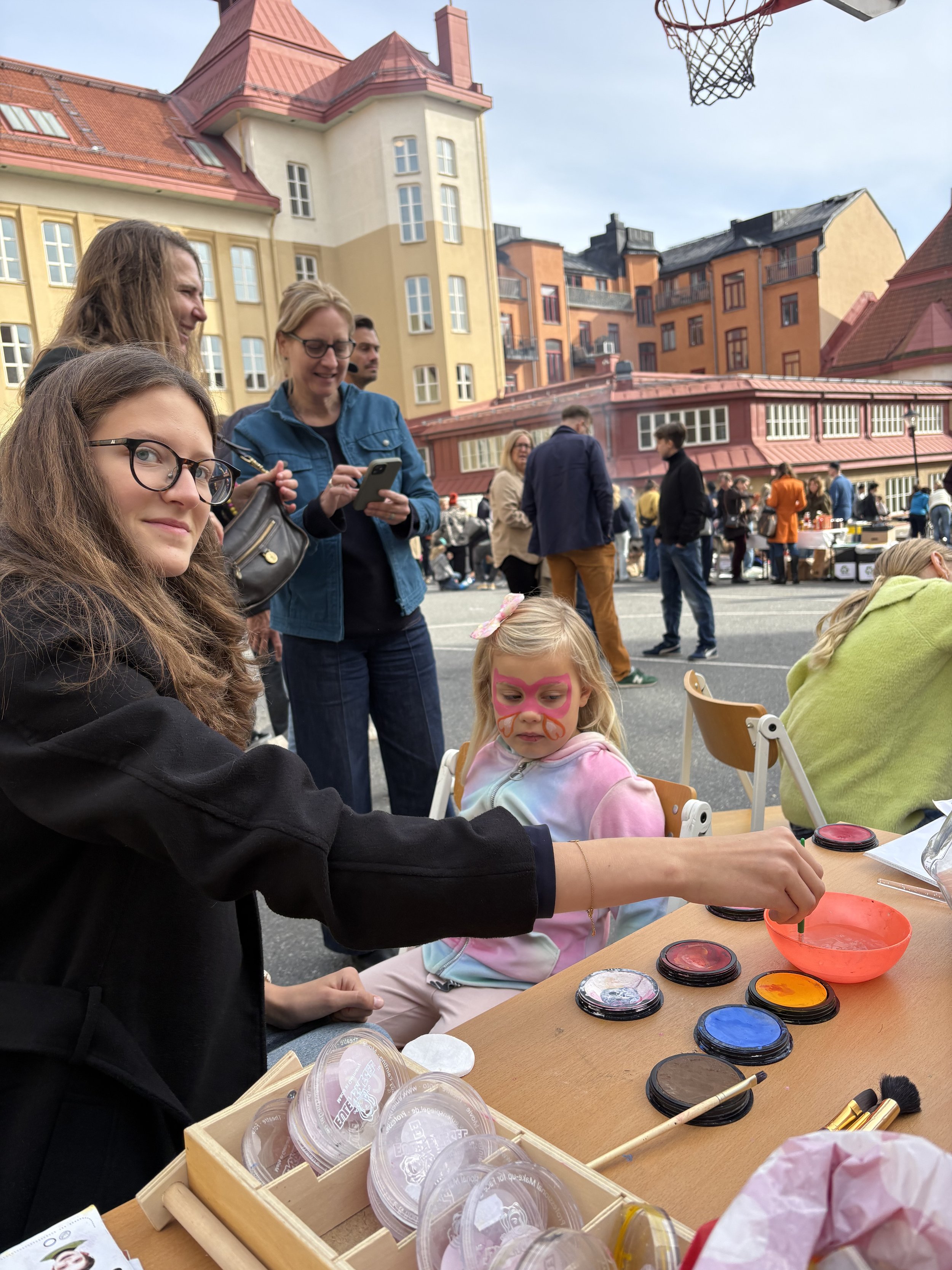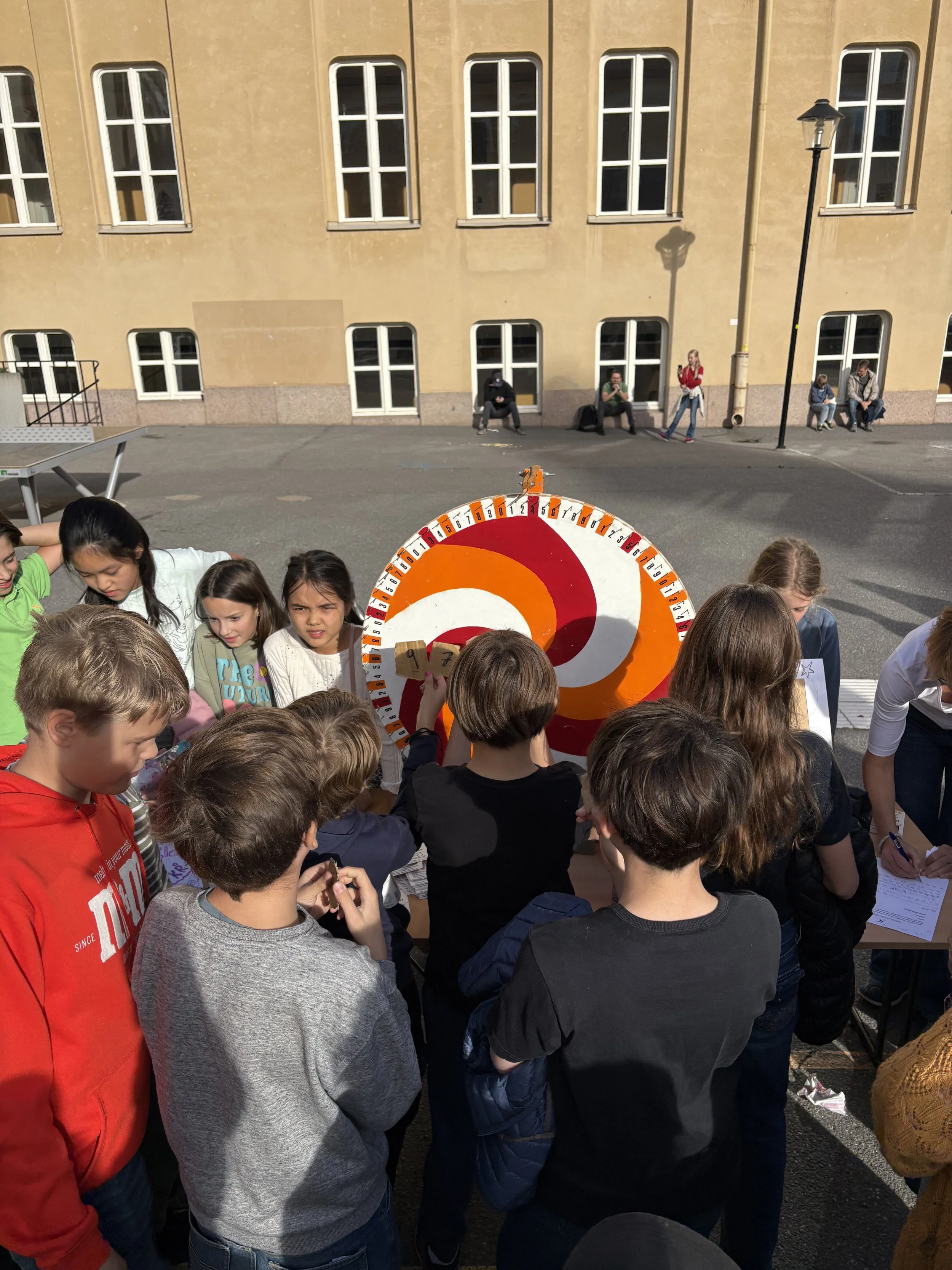 På skolgården doftar det av nygrillade hamburgare, popcorn och nybakat fika, och mellan stånden ringlar köer till lotterier, chokladhjul, sockervadd, sumobrottning och loppis. I varje hörn pågår något – manikyrstationen, ansiktsmålningen och de tävlingarna med roliga priser. Varje årskurs har sin uppgift, och tillsammans skapas en färgstark och generös fest som speglar skolans hjärta: musiken, kreativiteten och samarbetet.